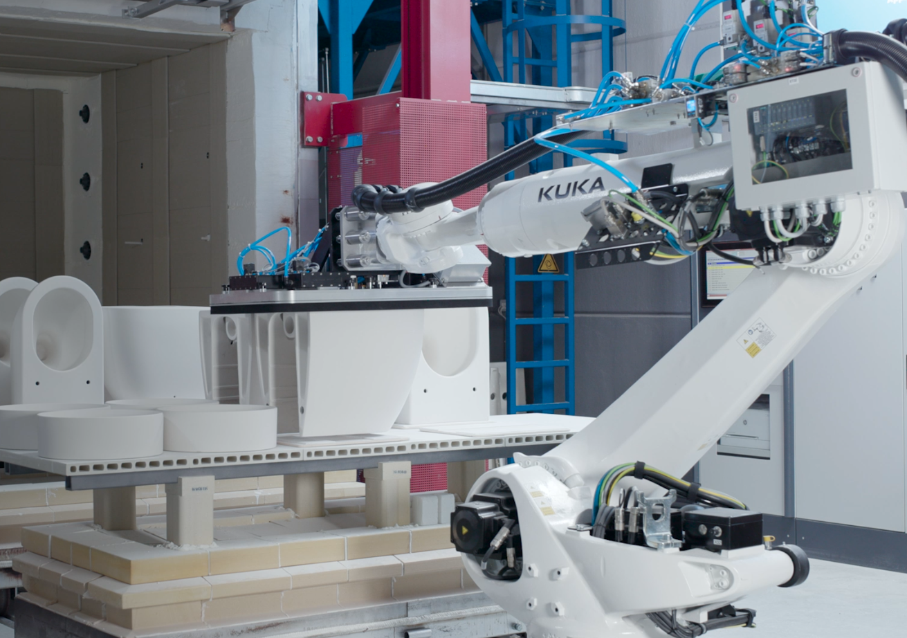 L'attrezzo con il piano aspirante è stato progettato per essere particolarmente versatile e adatto alla movimentazione di tutti i diversi modelli e dimensioni di sanitari: WC sospesi, bidet, lavabi ecc. In questo modo è stato sviluppato un utensile universale che evita la necessità di cambiare continuamente l'attrezzatura del robot da pezzo a pezzo, garantendo così una capacità produttiva estremamente elevata.